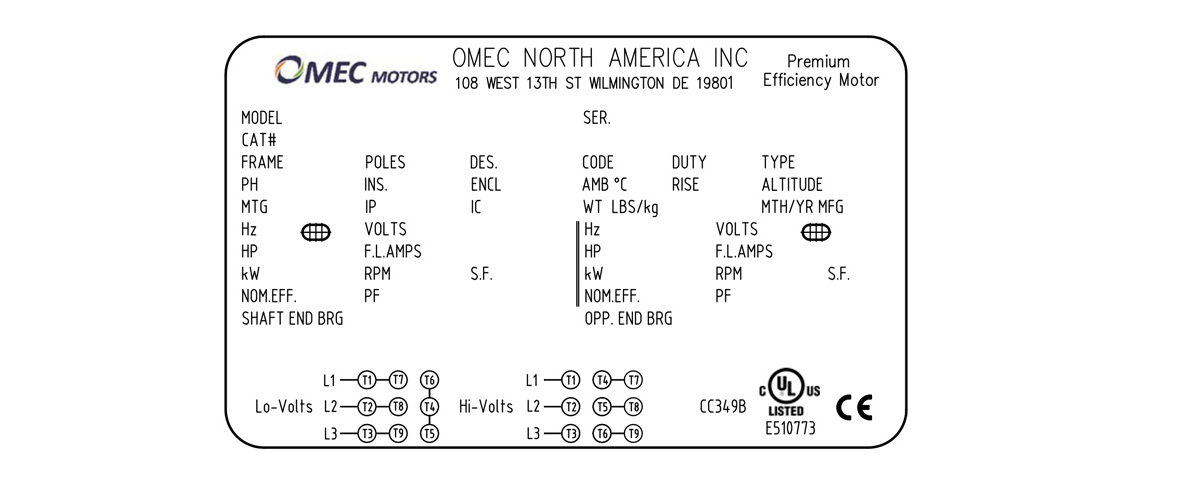 | NEMA TEFC 低壓電機(jī) OMN 143T-2 1.1kW 208-230/460V T |